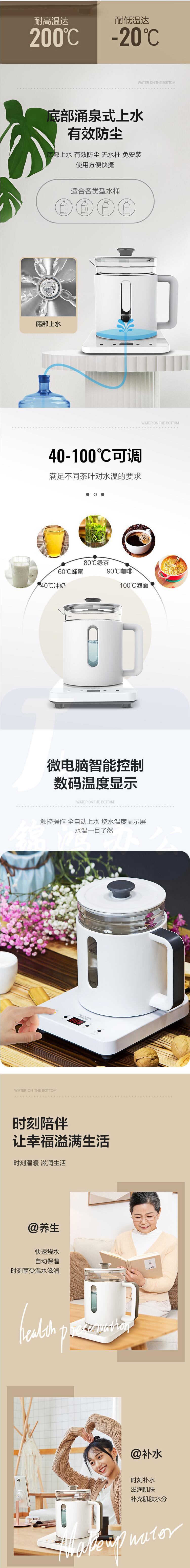 澳柯玛 自动上水电热水壶玻璃 底部上水 免开盖ADK-1350T39