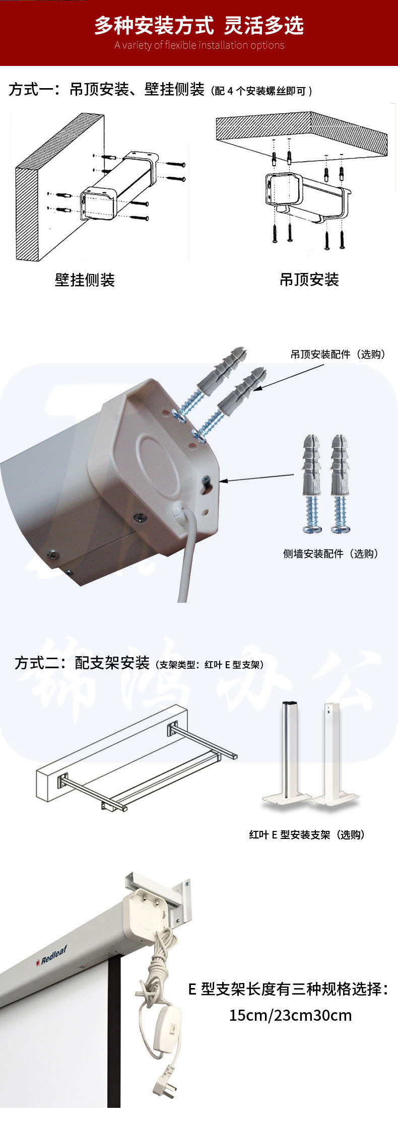 红叶(HONGYE)250英寸4:3电动玻珠白塑银幕 白塑 5.08*3.81
