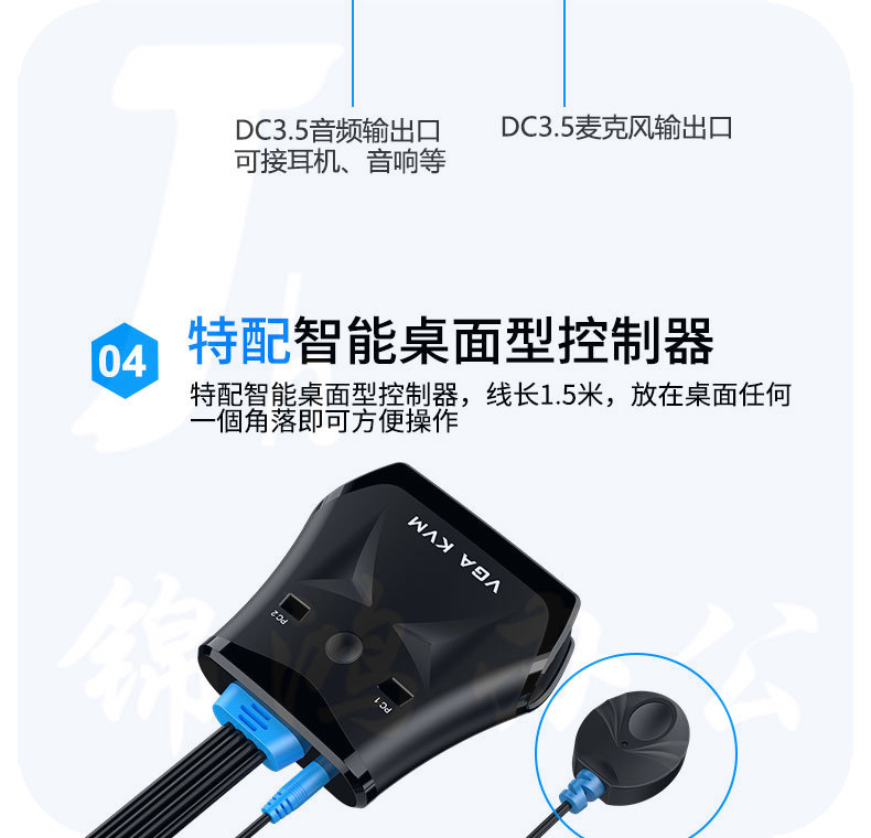 迈拓维矩 MT-201VL 2进1出KVM切换器 2口手动USB VGA 线机一体带音频 2进1出
