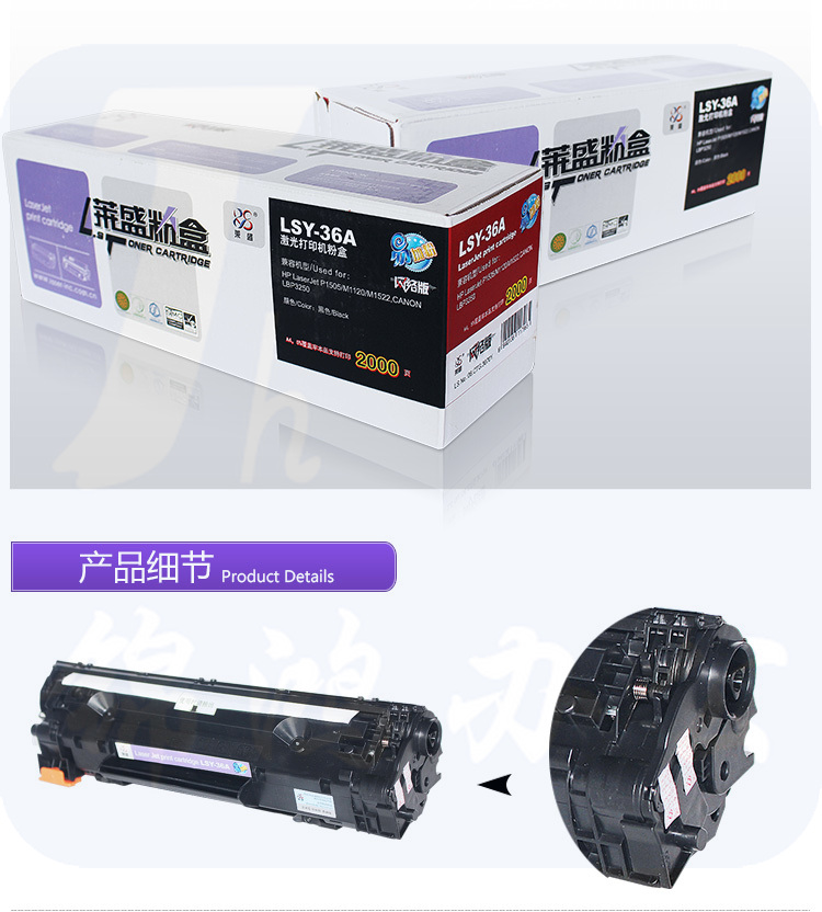 莱盛LSGB-CB436A易加粉黑色硒鼓适用于HP LJ-P1505/M1120/M1522 CANON LBP-3250
