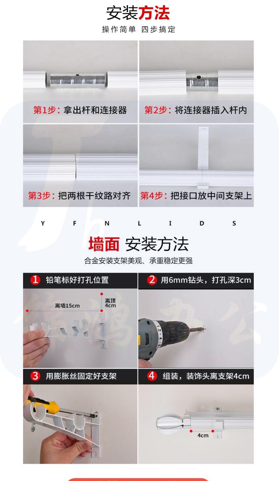罗马杆窗帘杆单杆 窗帘轨道静音杆 总长2米 珍珠白 货号:JC