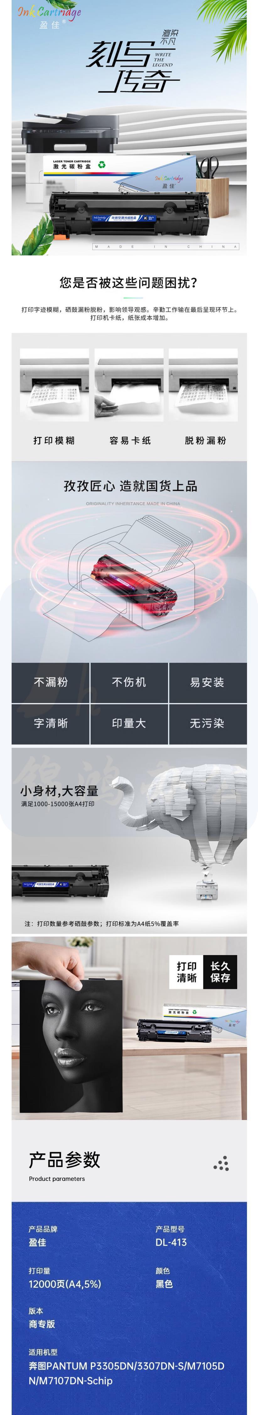 盈佳 DL-413 硒鼓 黑色 12000页(A4,5%)适用于奔图P3305DN 3307DN-S M7105DN M7107DN