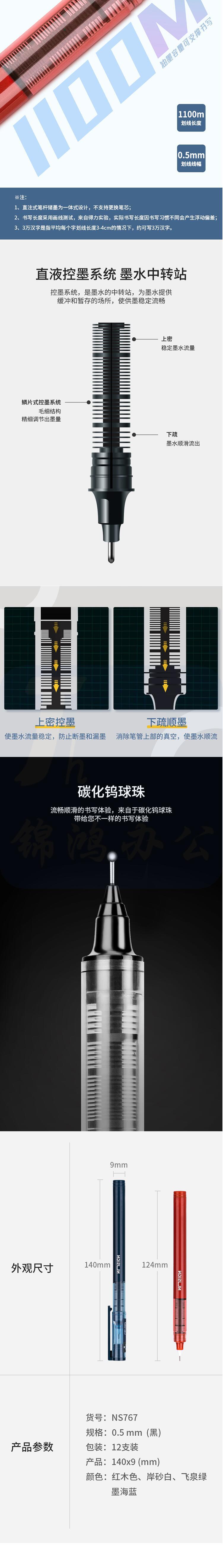 得力纽赛 NS767直液式走珠笔 (12支装) 0.5mm黑进口油墨中性笔签字笔学生考试笔