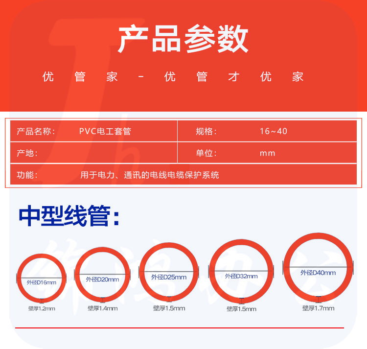 巨联(JULIAN)20mm 3米/根PVC 穿线管