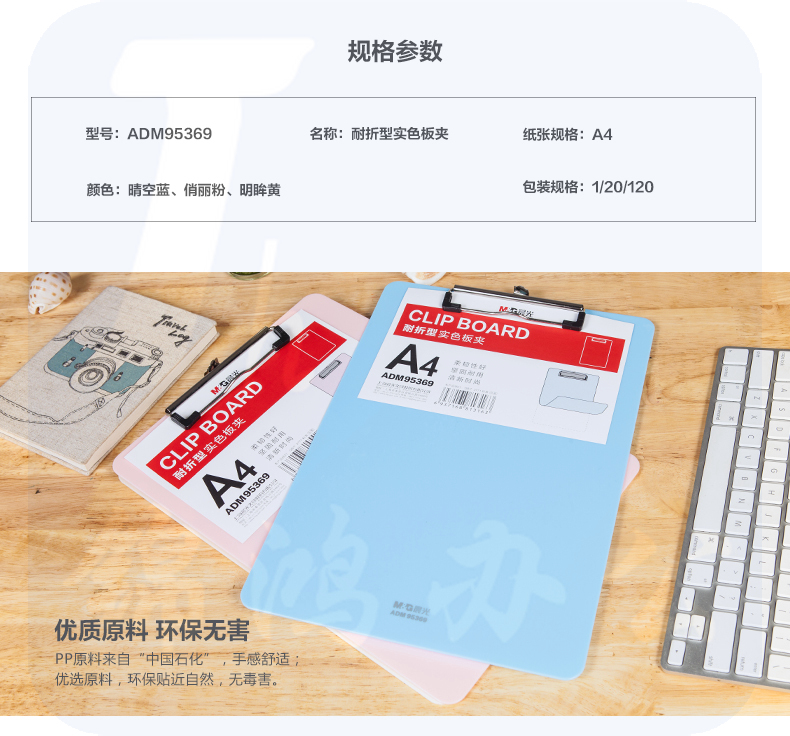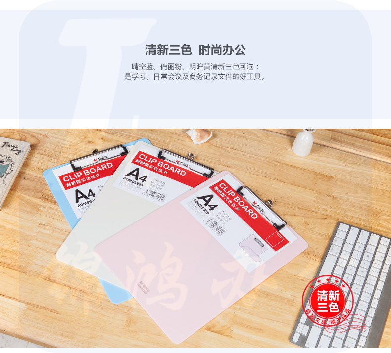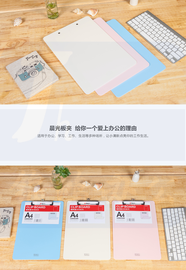 晨光 A4粉色耐折型书写板夹 记事夹文件夹垫板 单个装ADM95369