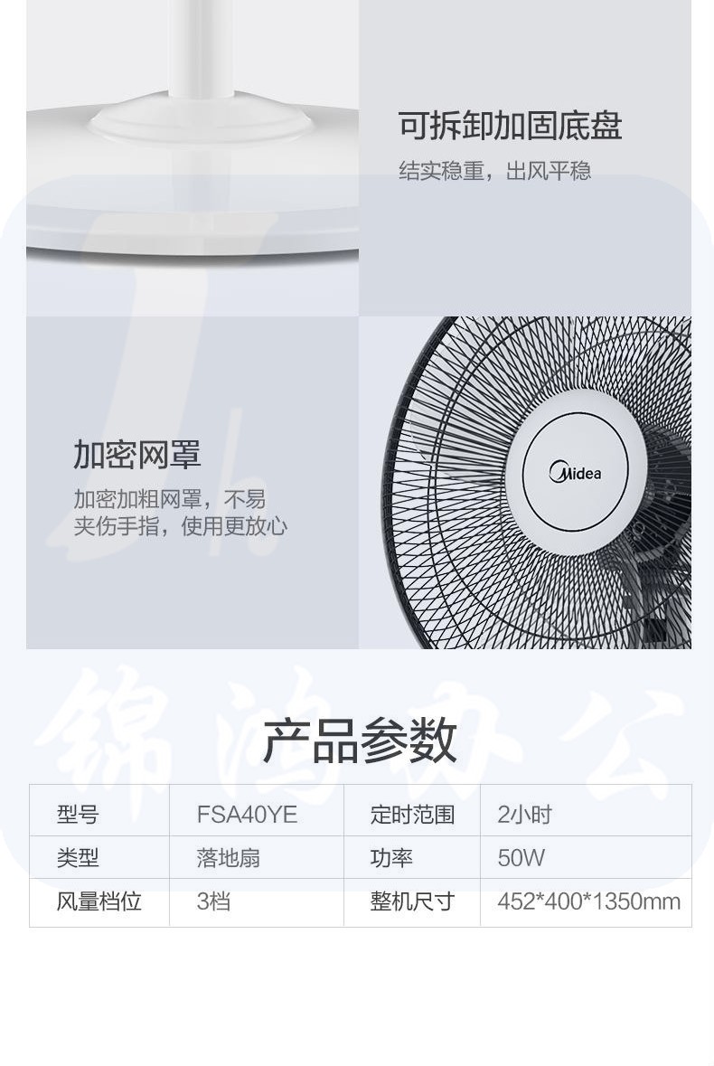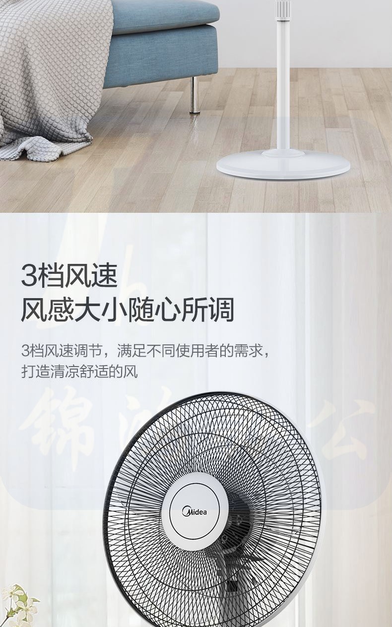 美的 FSA40YE 三叶落地扇/电风扇/摇头俯仰升降