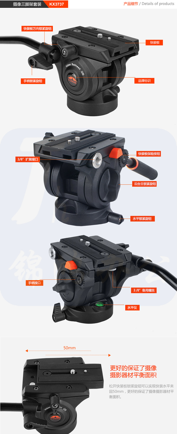 科漫KX3737液压云台支架三角架