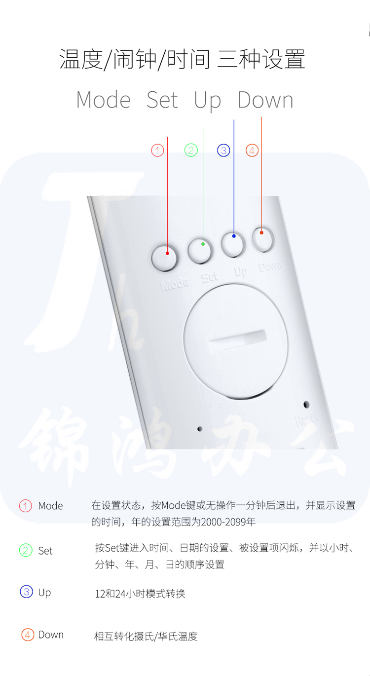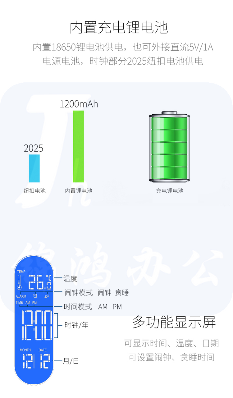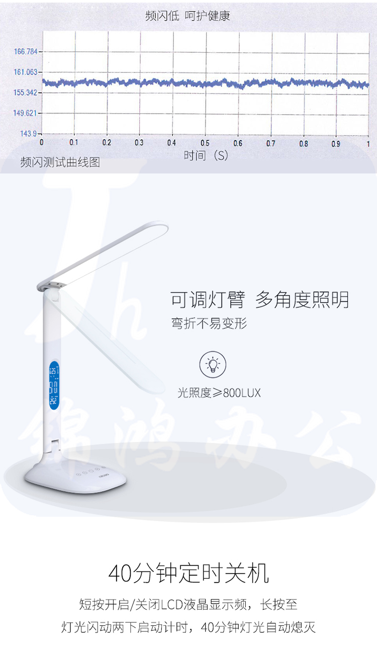 得力(deli) 4325 LED可充电台灯 时间闹钟 可调光调色 白色