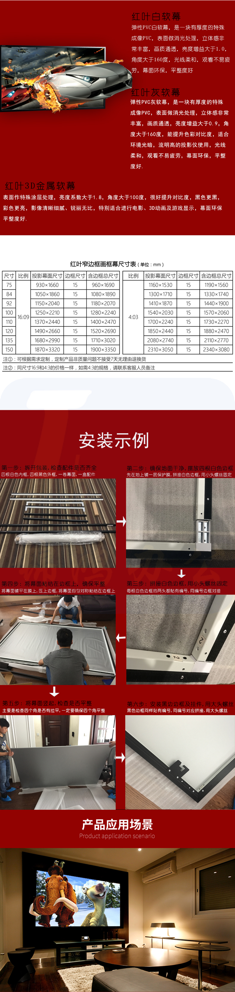 窄边框120寸16:9纳米高清4K&3D白软幕灰幕金属幕影院画框幕 2.66*1.49