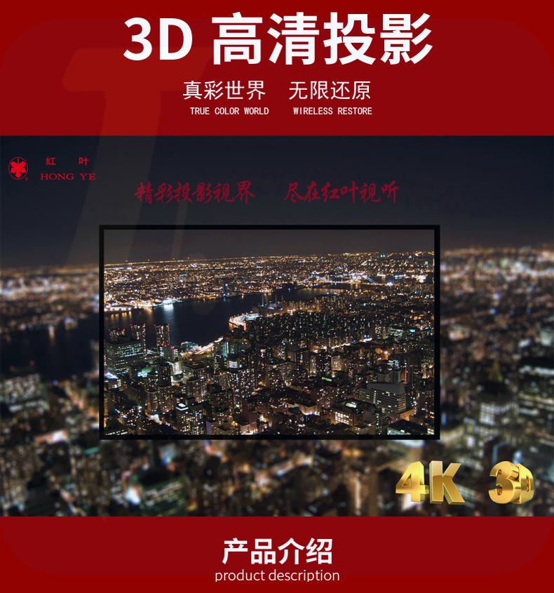 红叶 投影幕120英寸16:9电动幕布