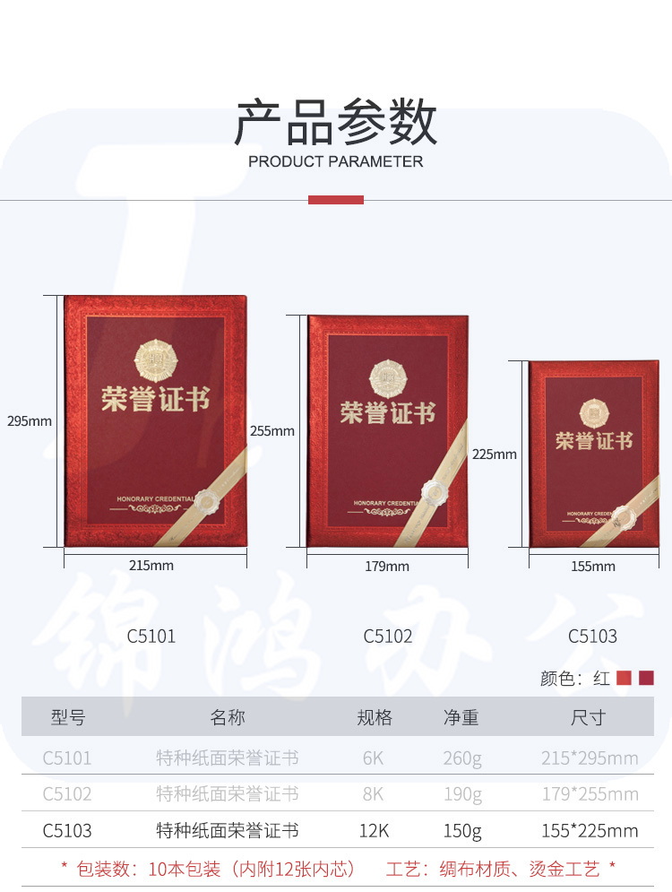齐心 C5103 荣誉证书 附证书内芯 12K 10本/盒 按本销售