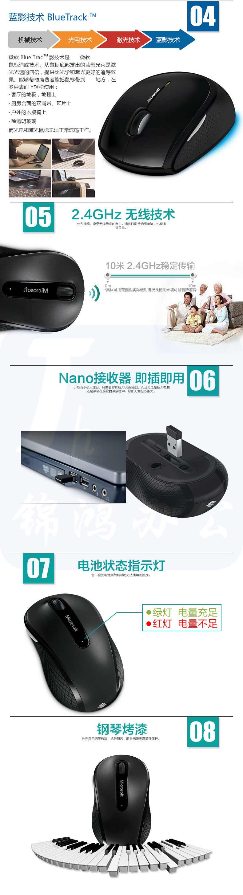 微软(Microsoft)无线蓝影便携鼠标4000