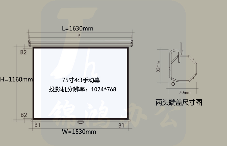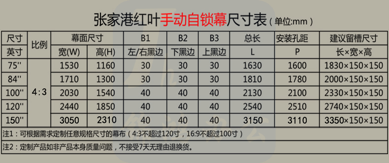 质保一年 好品质 影院视效 高清大屏 办公商用 家庭影院 手动自锁投影幕75寸4:3玻珠 白塑幕布 1.53*1.16