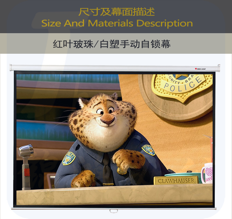 红叶(HONGYE)手动自锁投影幕75寸4:3玻珠 白塑幕布 1.53*1.16