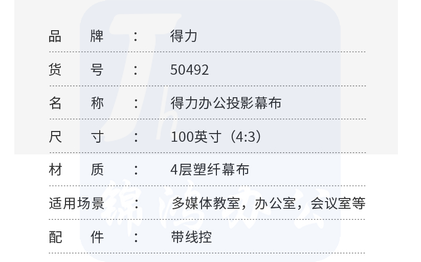 得力(deli) 50492 100英寸 4:3电动调节投影幕布投影布
