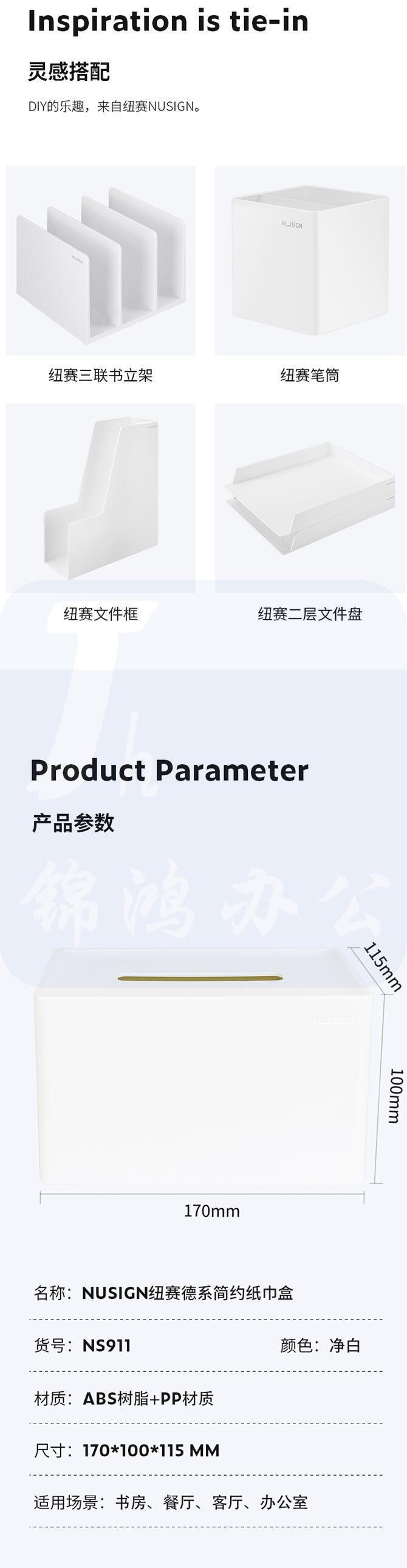 得力纽赛NS911简约纸巾盒 象牙白170*100*115mm