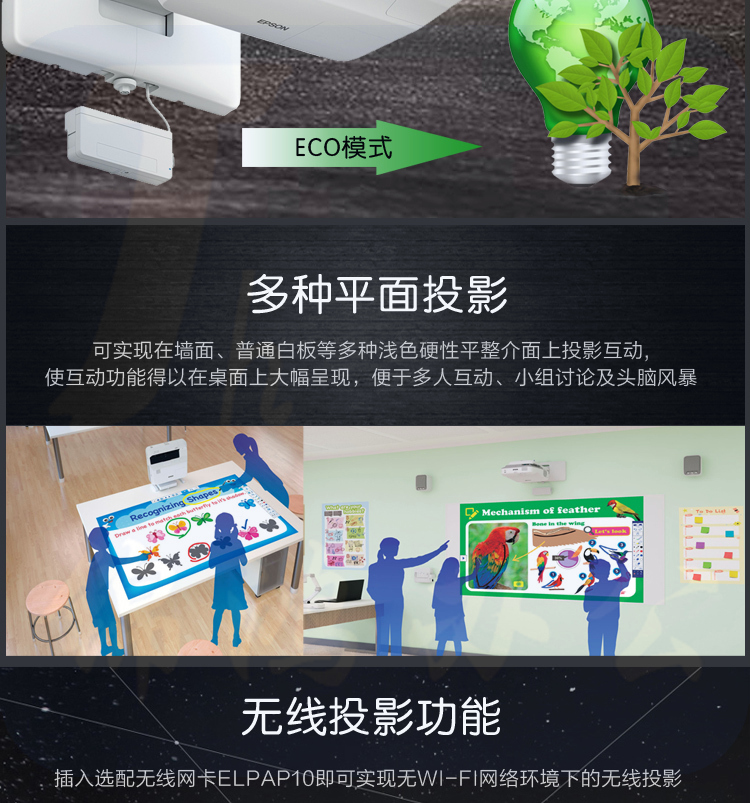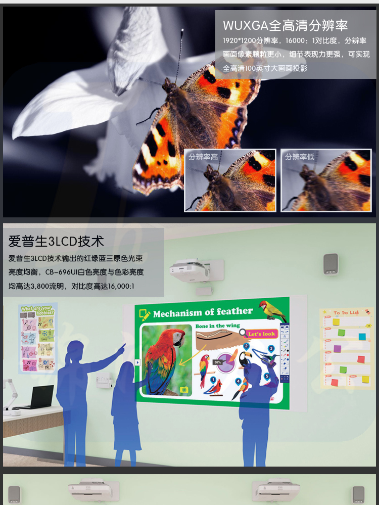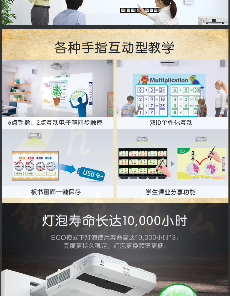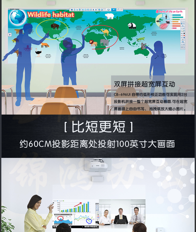 爱普生(EPSON)CB-696Ui 投影仪 商用 办公 教育 (3800流明 手指互动 1080P超短焦 不含安装)