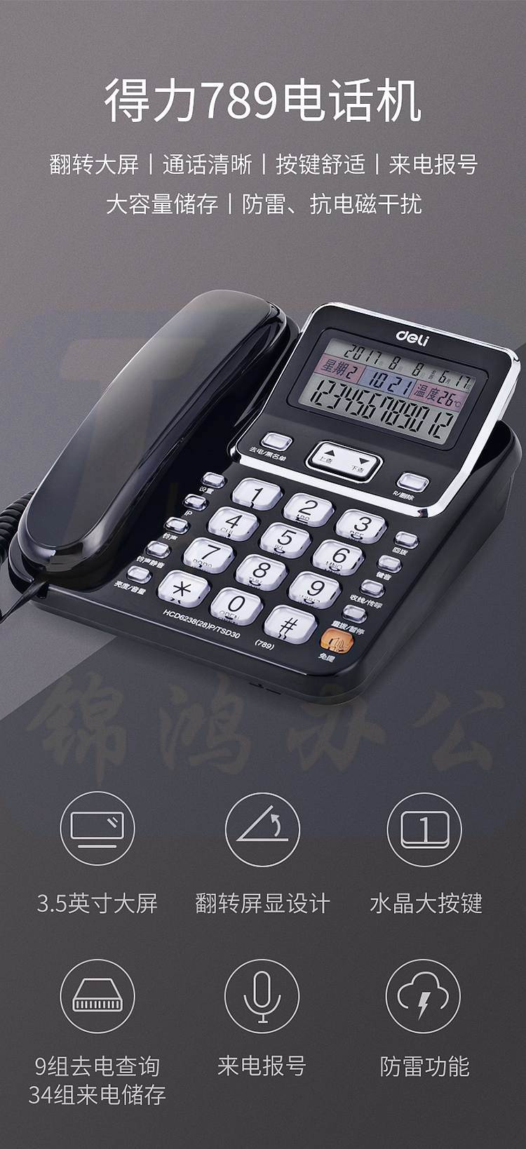 得力 789 电话机 翻转可摇头 可接分机