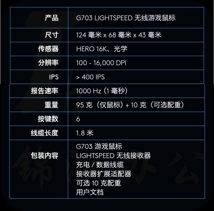 罗技 G703 无线鼠标 16000DPI 升级HERO传感器