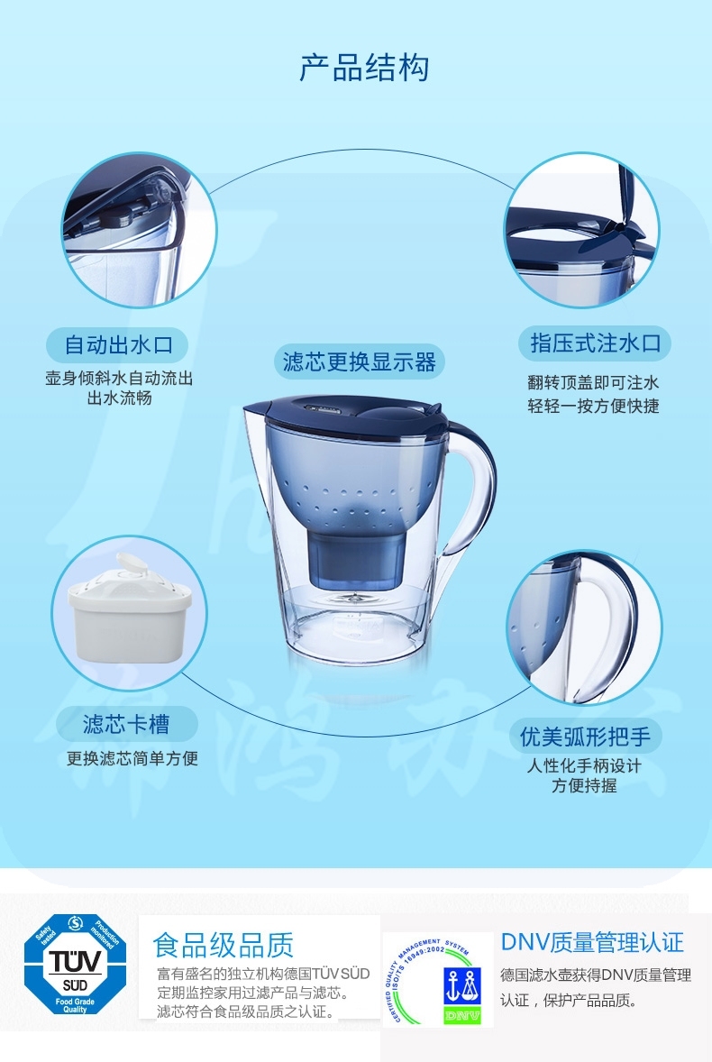 德国BRITA/碧然德 Marella XL 3.5L家用过滤水壶净水壶净水器(一壶五芯)