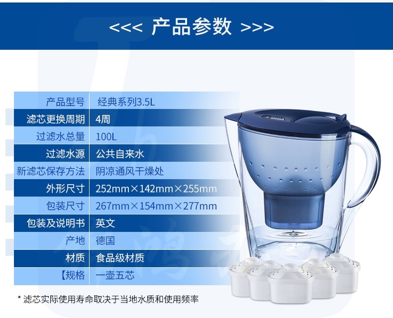 碧然德(BRITA)预订款 德国 Marella XL 3.5L家用过滤水壶净水壶净水器(一壶五芯)1个/盒