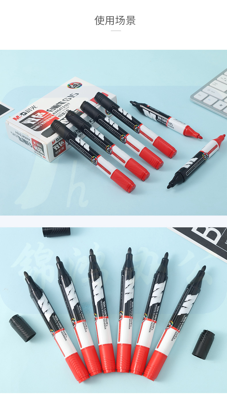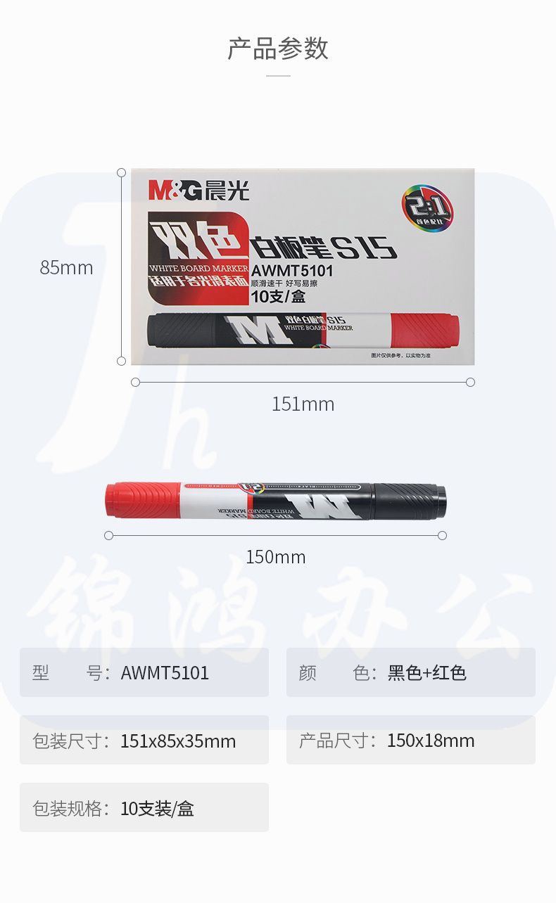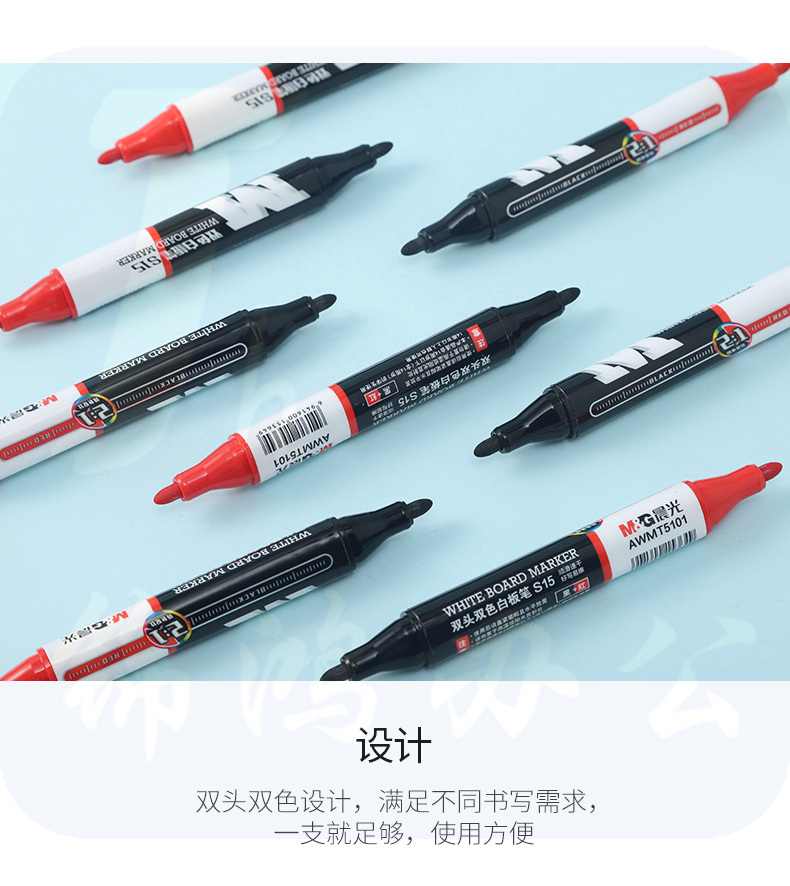 晨光双头双色白板笔S15黑+红AWMT5101 10支装