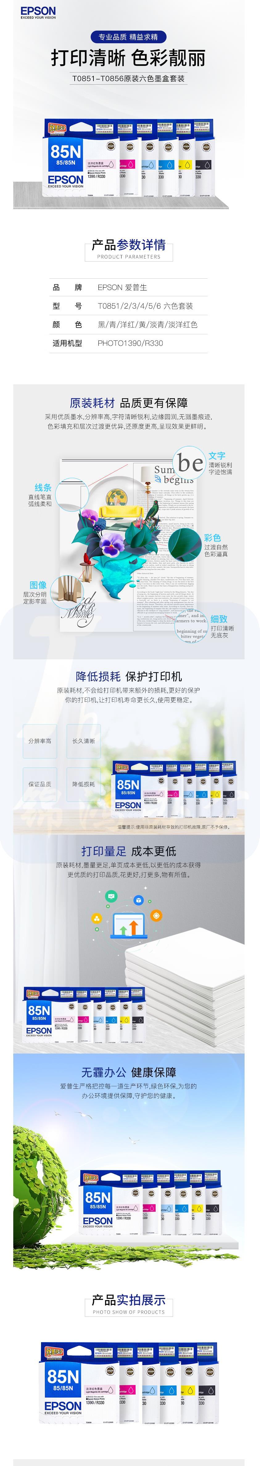 爱普生(EPSON)T0851-T0856原装6色墨盒套装 (适用PHOTO1390/R330机型)