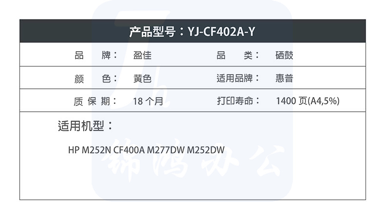盈佳YJ CF402A(201A)黄鼓-1.4K(带芯片)