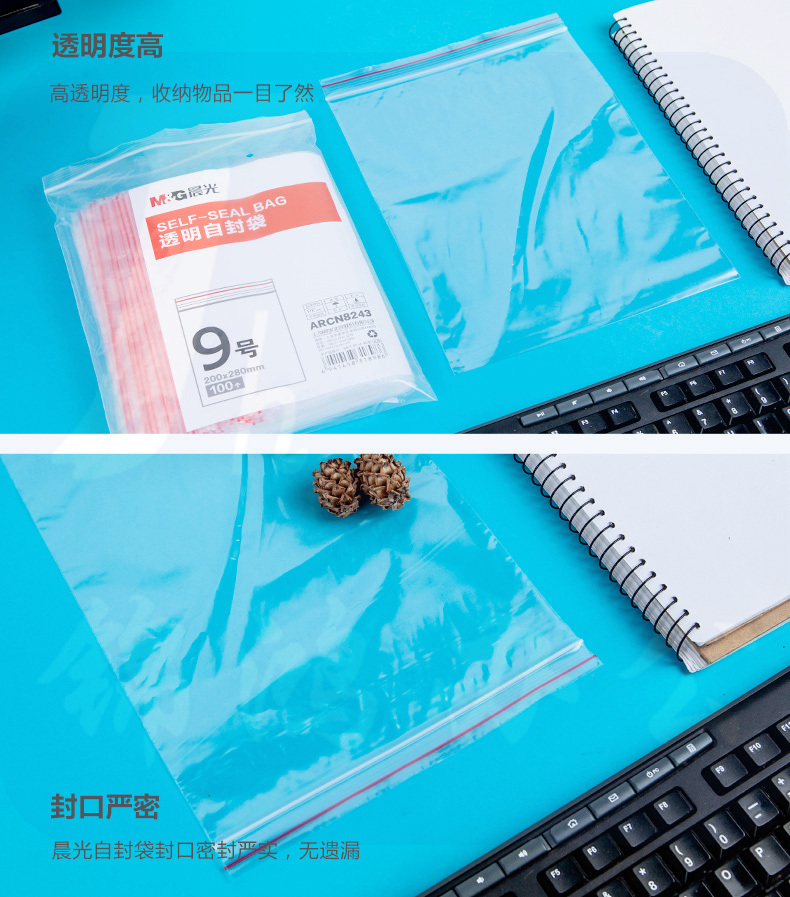 晨光9号透明自封袋ARCN8243(200x280mm)100个