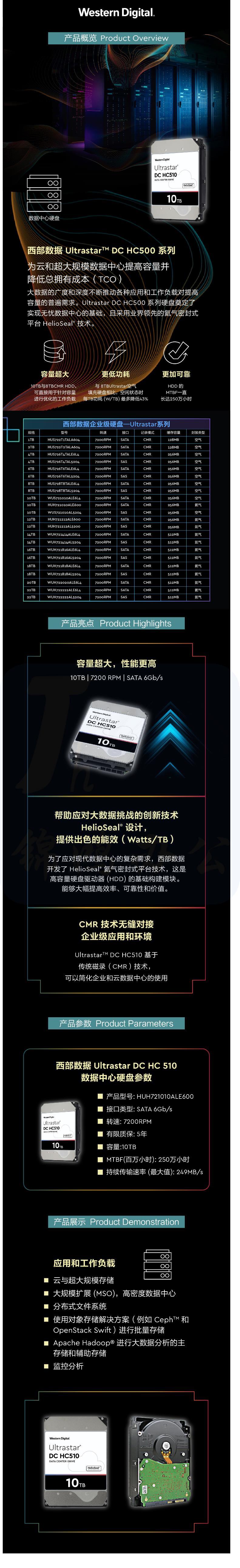 西部数据 WUH721818ALE6L4 企业级硬盘 18TB HC550 SATA6Gb/s 7200转512M 氦气密封