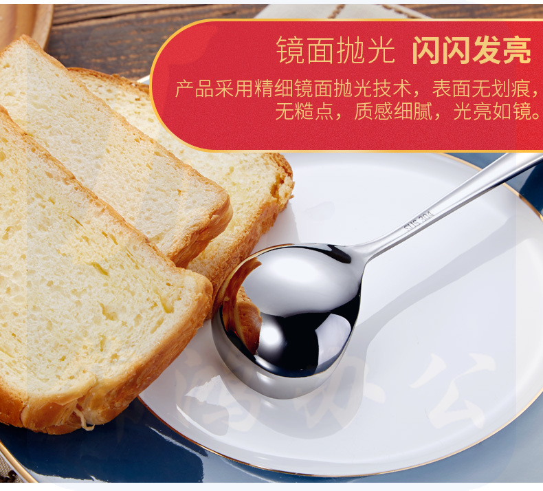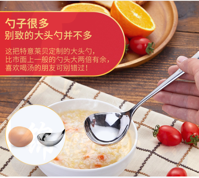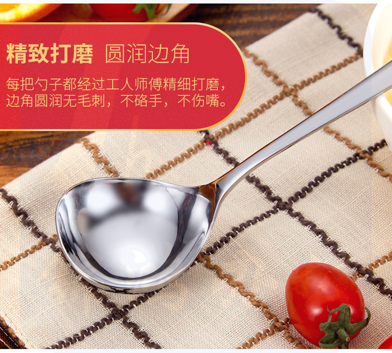 加厚不锈钢小汤勺 长柄大头圆勺 家用汤勺
