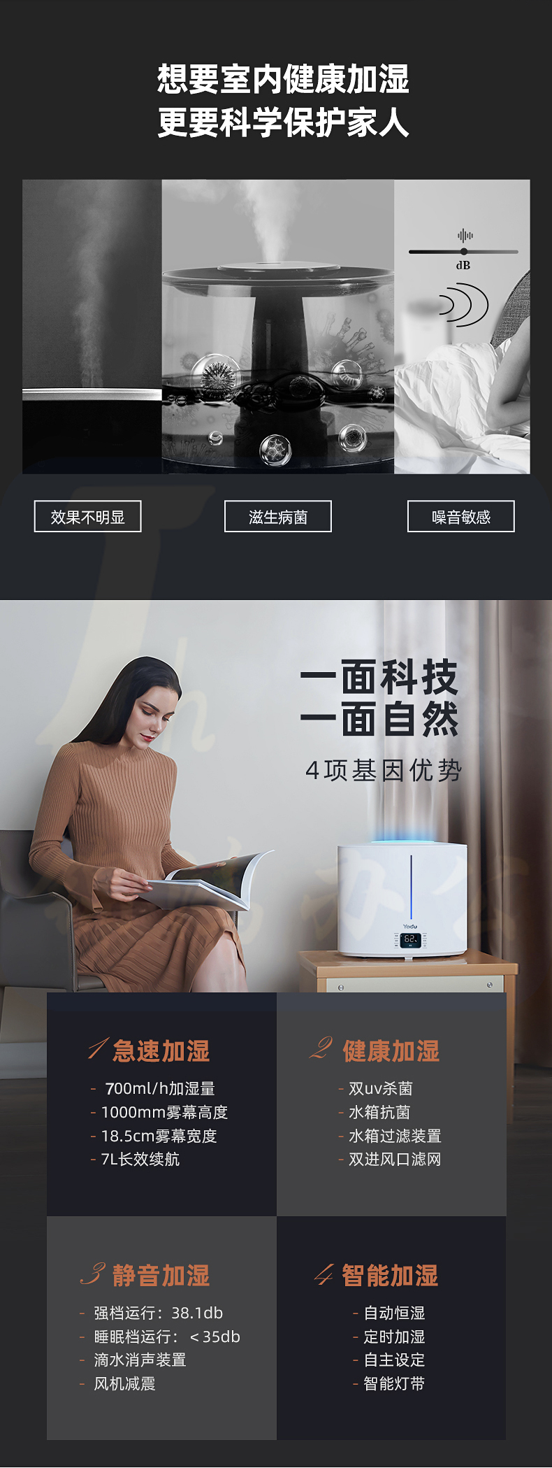 亚都(YADU)SC700-SK071加湿器 紫外线杀菌 上加水 触摸屏式 雾幕灯光 母婴家用 卧室家用空气加湿器