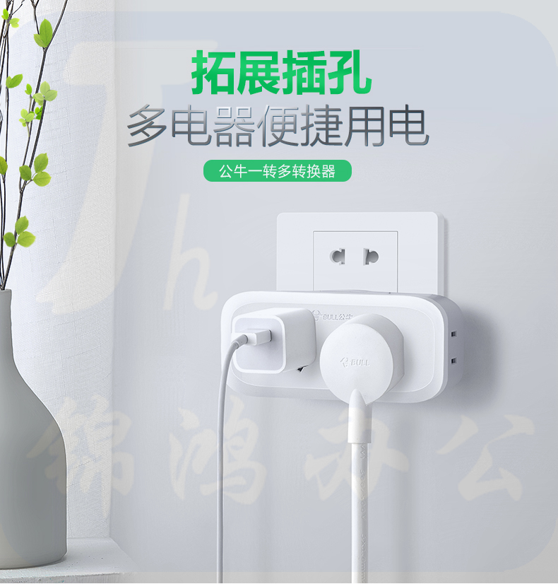 公牛(BULL)GN-904 /转换插头转换插座/国标电源转换器/一转四/