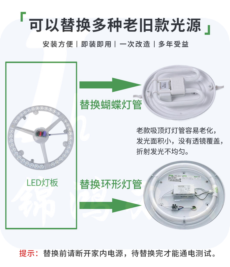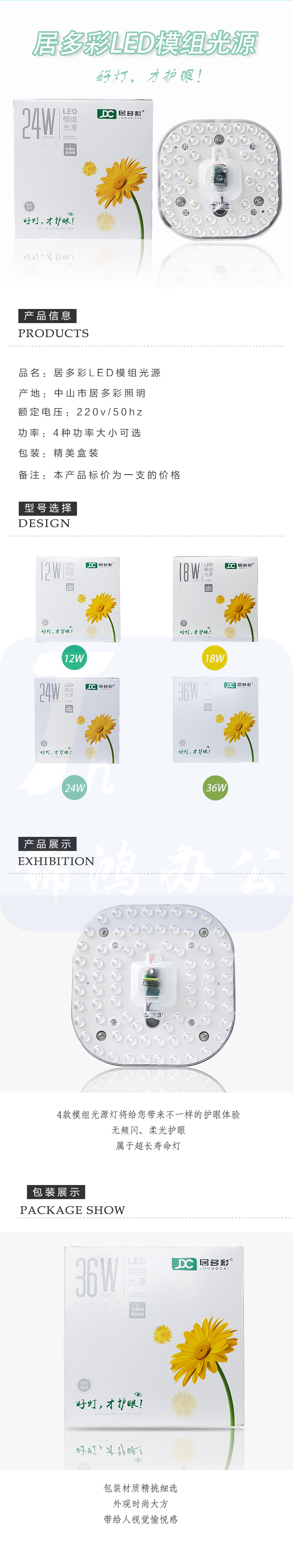居多彩 LED吸顶灯光源65W/白光暖光双色调光/奔驰款高亮模组透镜/直径350mm(适用于底盘450mm以上吸顶灯替换)