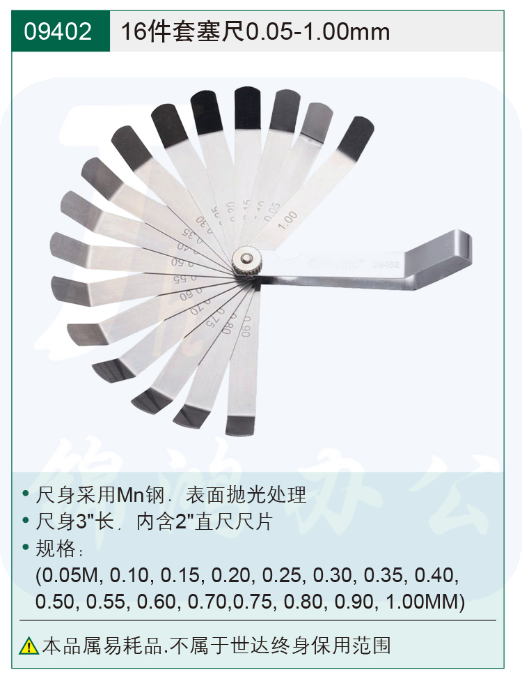 世达(SATA)16件套塞尺0.05-1.00MM货号09402