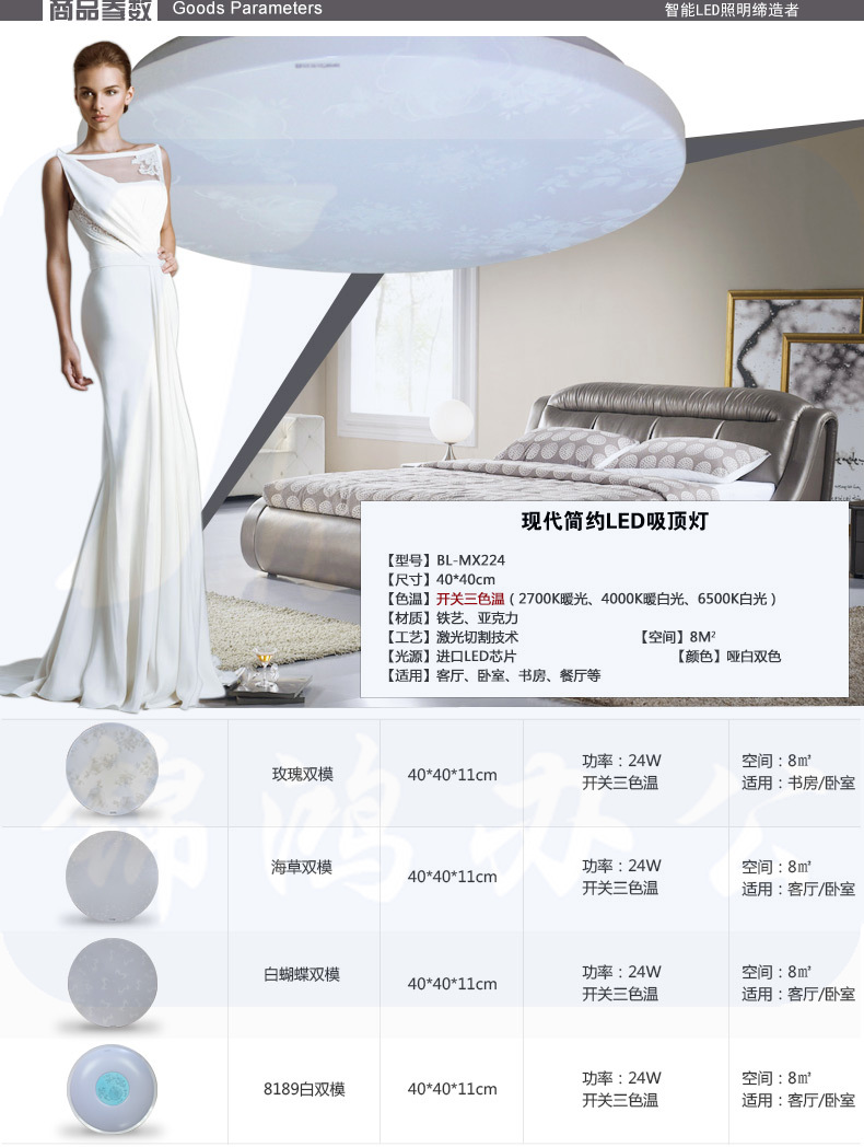 led吸顶灯 2*24W玫瑰变光 直径350mm(拍10个装一箱)