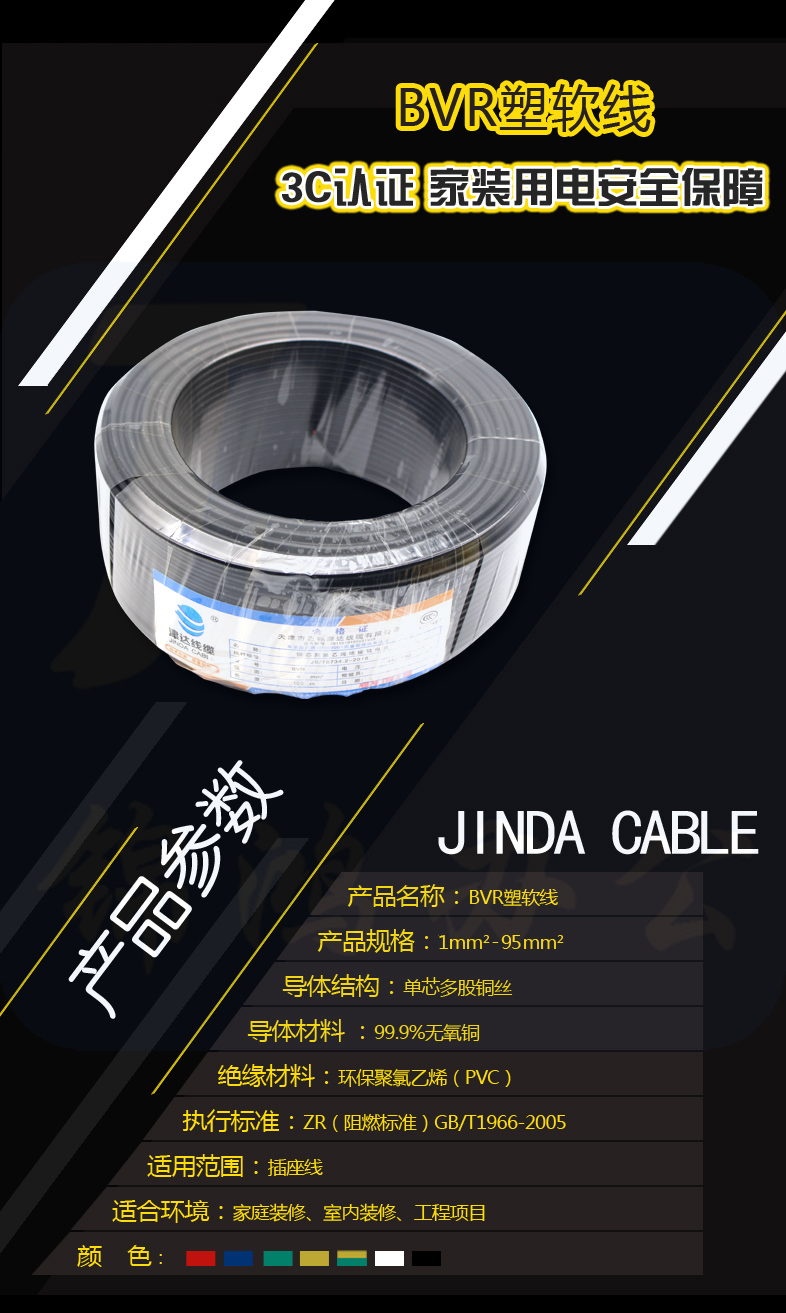 津达电缆 BVR-双色0.75平方 软塑铜线 200米/盘