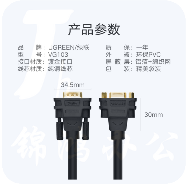 绿联 VGA延长线 3+6 工程级VGA公对母高清连接线 电脑显示器电视视频加长线 1米(30742)