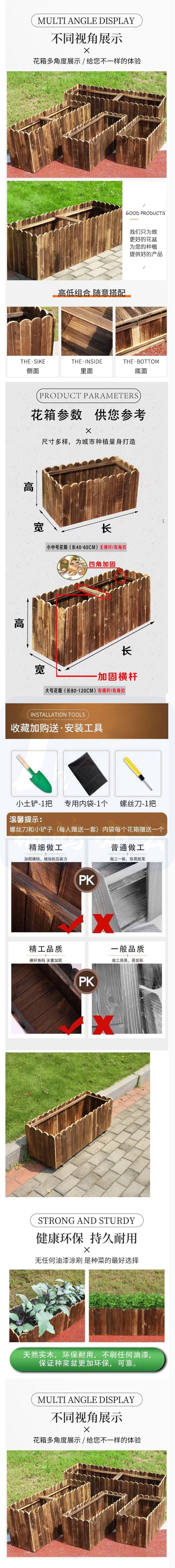碳化防腐木花箱 花槽花盆 尺寸:60*40*30cm 货号:JC