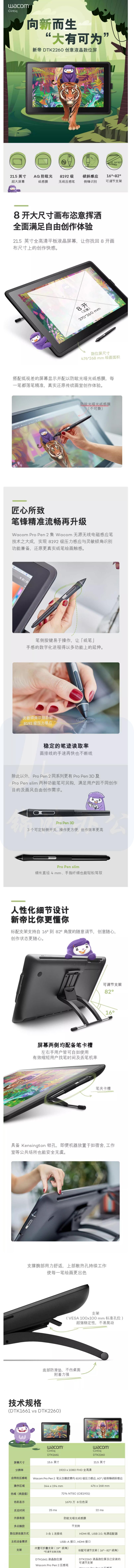 wacom 数位屏新帝21.5英寸画板显示屏 DTK2260全高清液晶绘画屏