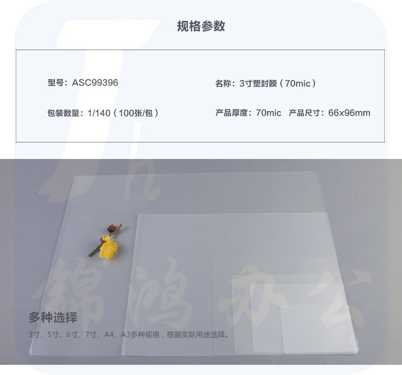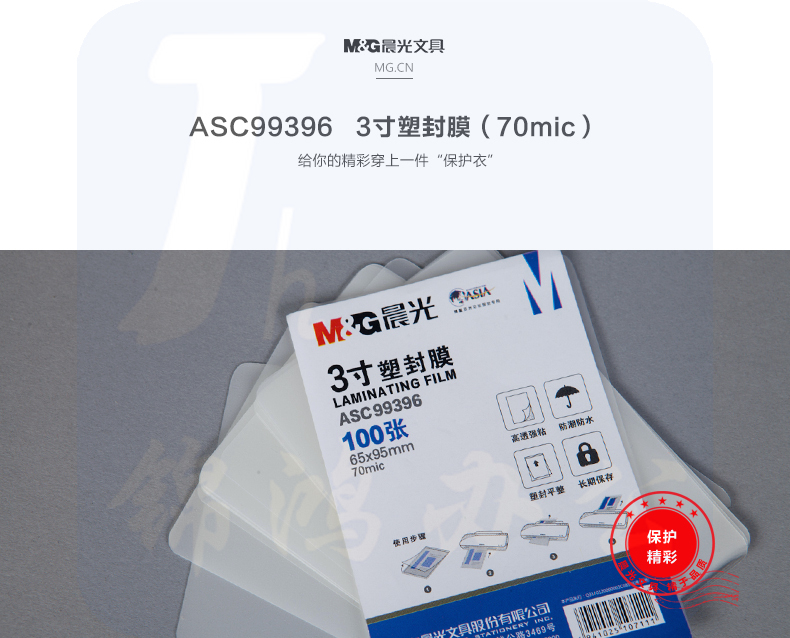 晨光(M&G)3寸防水塑封膜70mic照片护卡膜一包100张ASC99396
