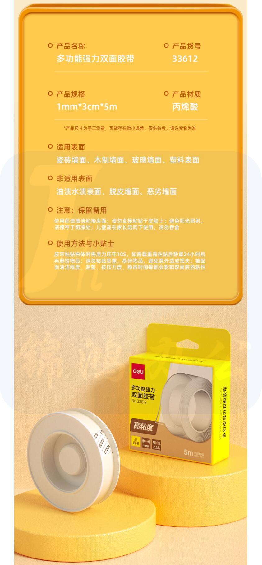 得力 30mm*5m*1mm纳米强力无痕魔力胶带透明无痕双面胶 33612