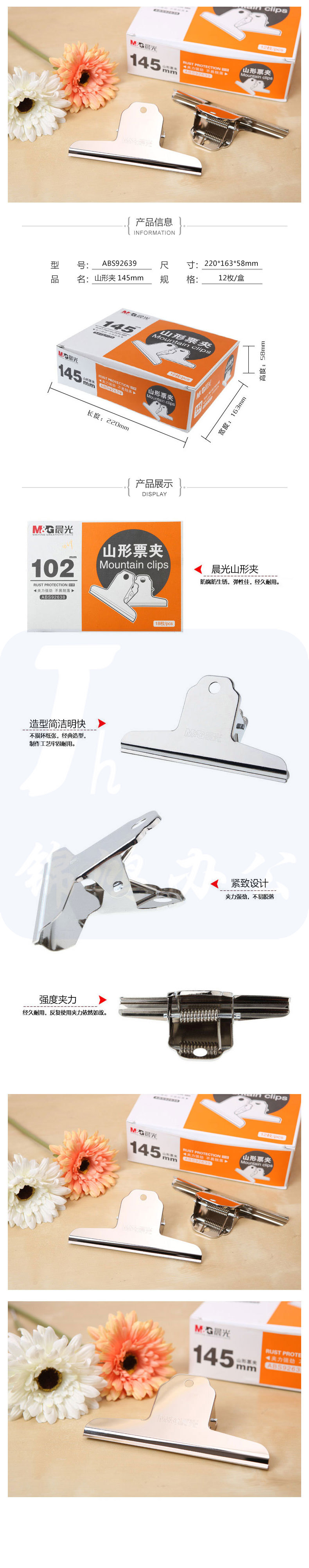 晨光(M&G)山形票夹145mm文件夹资料夹办公收纳夹ABS92639 一包6个装