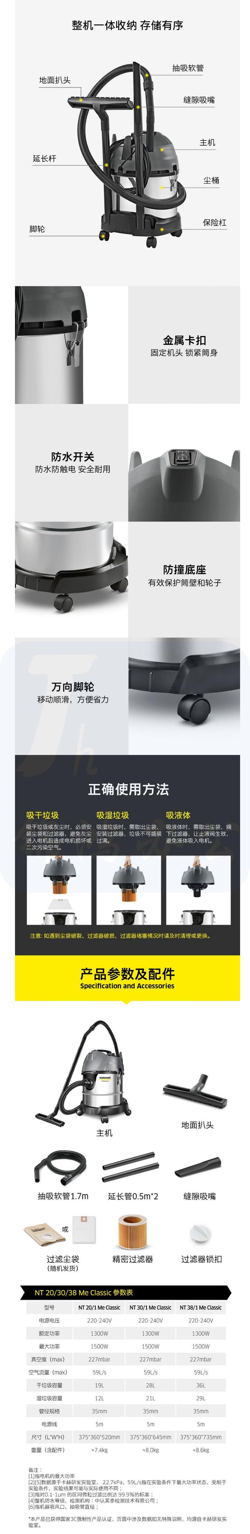 KARCHER 德国卡赫商用家用工业吸尘器大功率干湿两用桶式NT系列 NT38