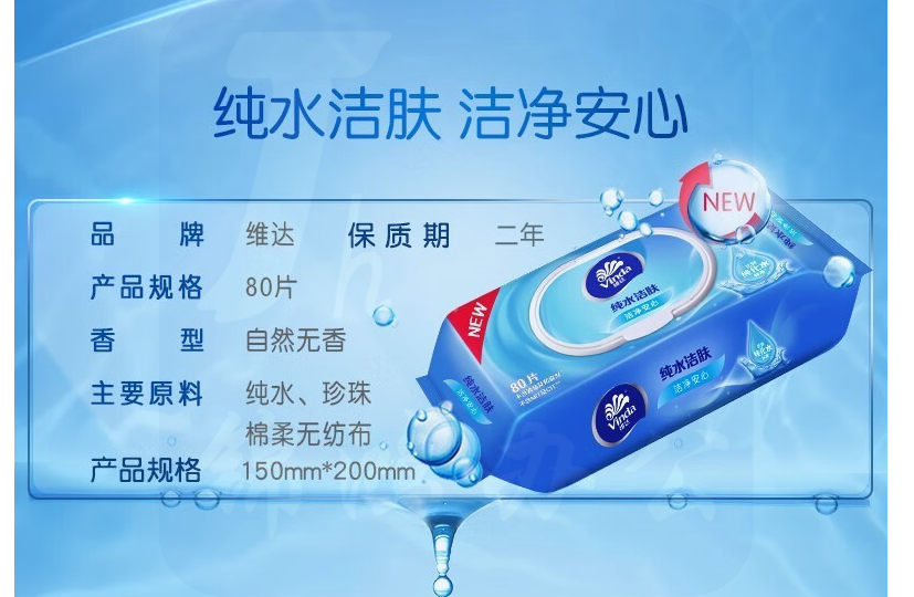 维达(Vinda)湿巾湿纸巾 纯水湿巾 带盖湿纸巾1包*80片