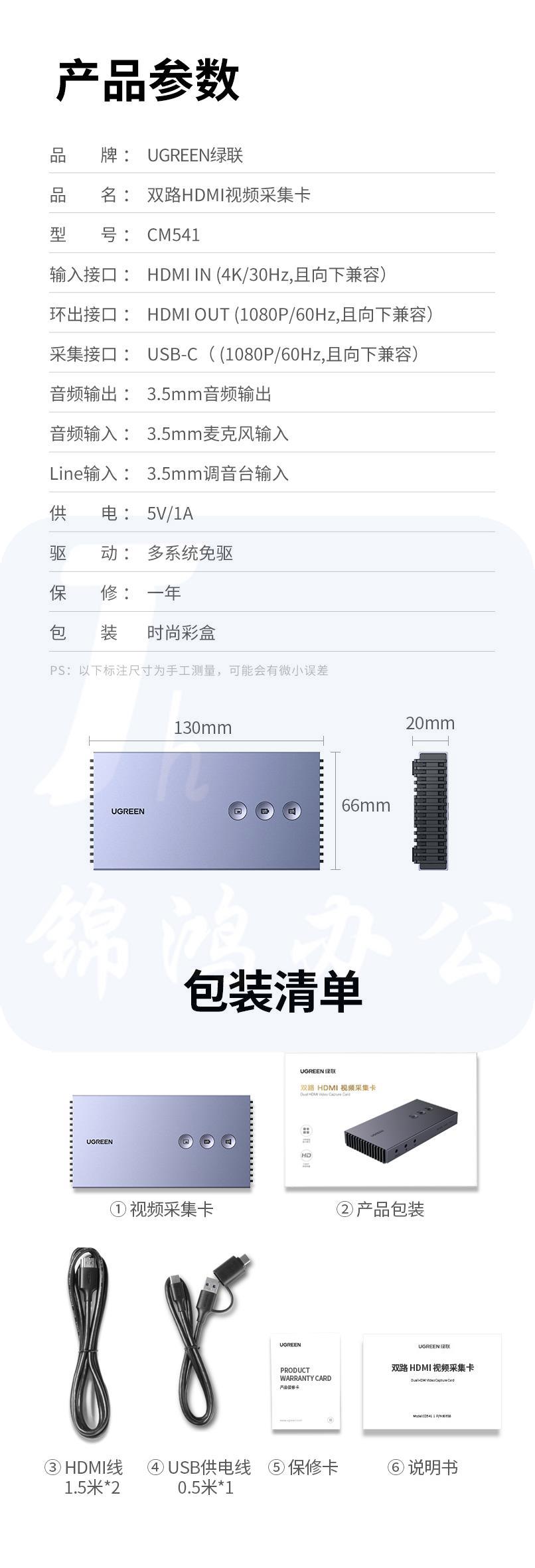 绿联 CM541 HDMI双路视频采集卡 1080P 80688