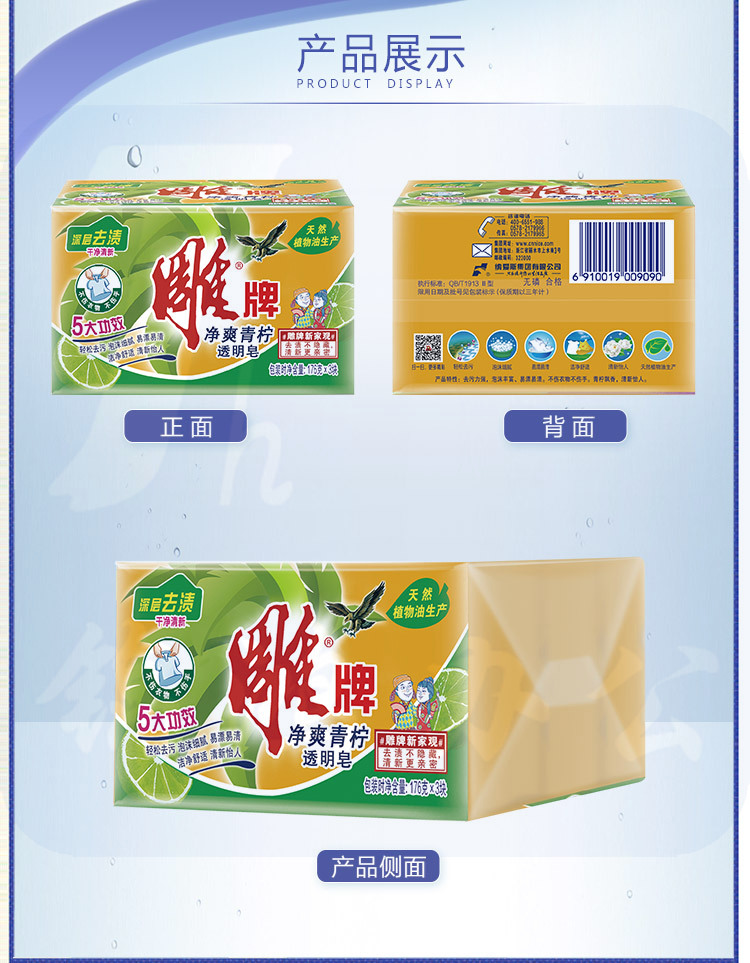 雕牌 透明皂/洗衣皂176g 深层去渍 肥皂 48块/件