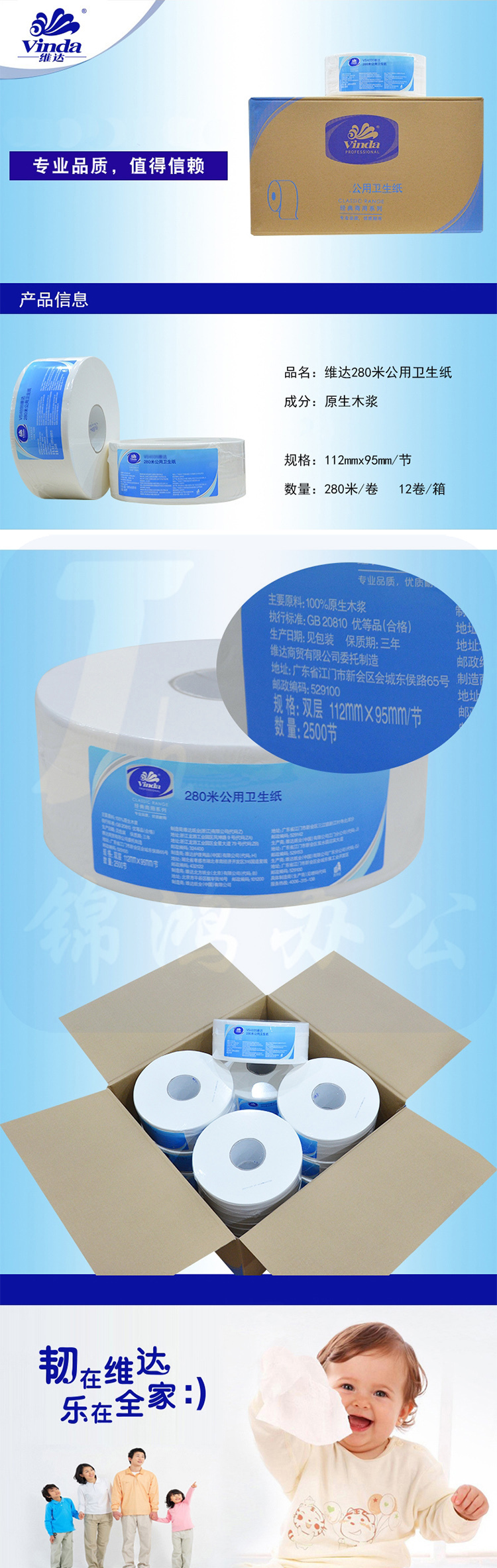 维达大卷纸 VS4411 112*95MM*2层/节 605克/卷 12卷/箱
