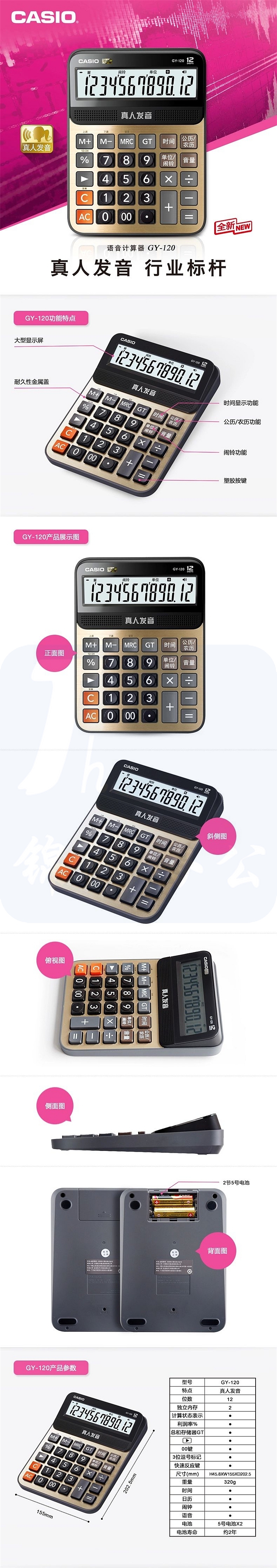 卡西欧(CASIO) GY-120-GD 语音计算器 蟠龙金