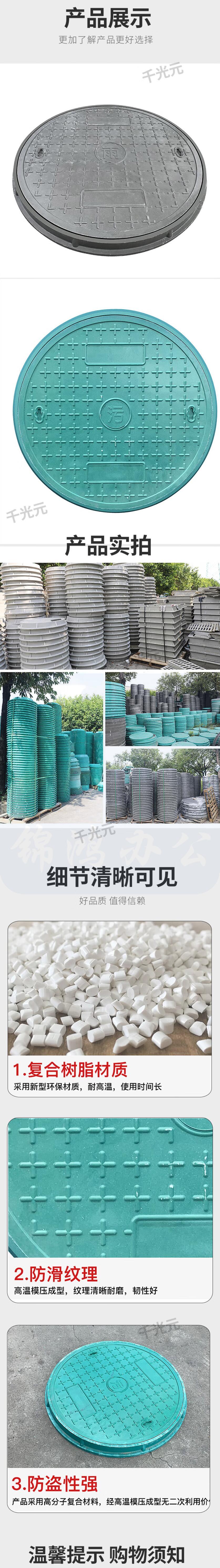 井盖 树脂复合圆形井盖Φ700mm下水道污水雨水盖